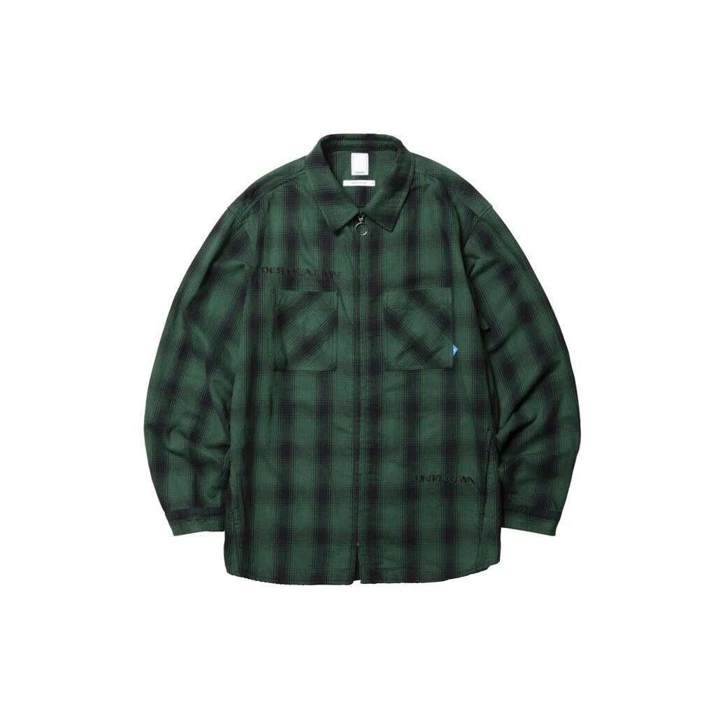 フロントにリング型スライダーを使用したビンテージ感のあるデザイン。右胸、左裾にはDESTINATION UNKNOWNのロゴが同色で刺繍されています。背面ヨークにはLIBERAIDERSの同色刺繍が入ります。