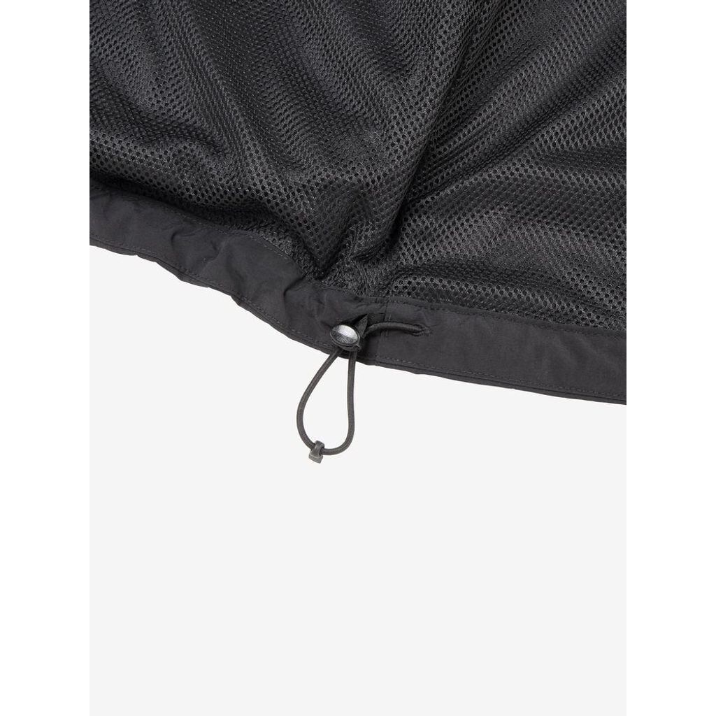 表地はコットンライクな表情のタスランナイロンを使用。フッ素化合物を含まないはっ水剤を使用したはっ水加工を施しており、多少の雨や汚れに対応します。裏地は肌離れのよいポリエステルメッシュ。大容量のマチ付きポケットは、中身が落ちにくいように面ファスナー式のフラップ付き。右胸のハーフドーム型ファスナーポケットは、貴重品の収納に便利です。背面にも大容量のマチ付きポケットを配置。襟にフードを収納できるビルトインフード仕様です。