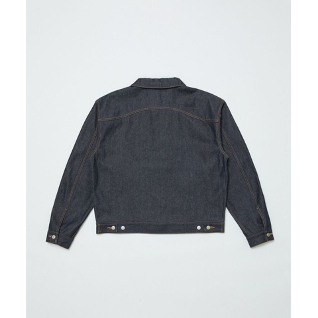 12ozデニムジャケット。岡山県産デニム使用。カーブポケット。クロップド丈、ボクシーフィット。オリジナルリベット、オリジナルタックボタン。広島県産日本製。