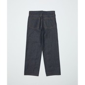 ストレートレッグのワイドシルエットの5ポケットジーンズ。タック入り、ダブルヨークデザイン。色落ち感のクリーンな12ozの岡山県産デニム。リジッド、ブラック、インディゴのミディアムウオッシュ広島県福山にて作成。MADE IN JAPAN。