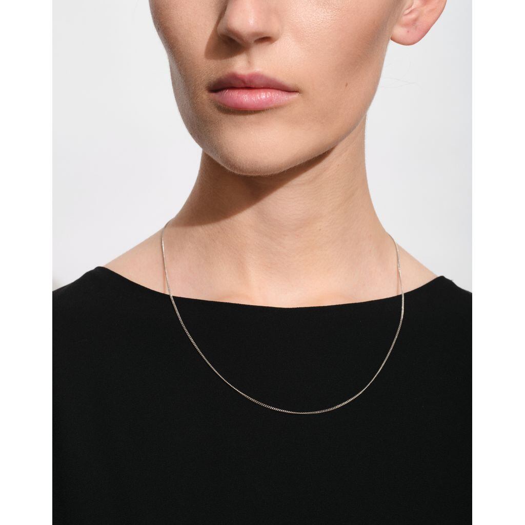 ジルチェーンは、繊細なダイヤモンドカットのカーブリンクが特徴的な、クラシックでスリムなチェーンです。すっきりとした印象を与えます。トムウッドのチェーンはすべて、クラシックでありながらモダンなユニセックススタイルで、単独で存在感のあるジュエリーとして身に着けるのも、他のコレクションのネックレスと組み合わせるのも簡単です。