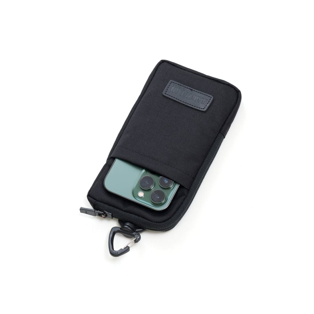2つのポーチを組み合わせた構造になっており、スマートフォン、カード、紙幣、小銭などの必需品を整理して収納できます。ミニマルなサイズながら、日常で必要なアイテムを効率よく持ち運ぶことが可能です。