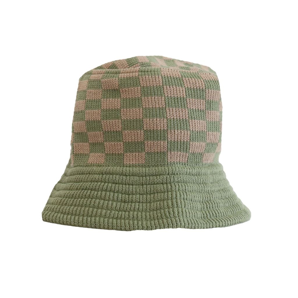 CHECKERED KNIT BUCKET HAT