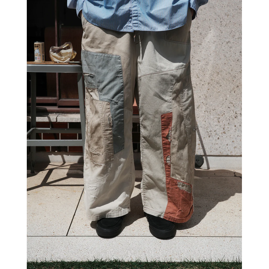 ANACHRONORM REMAKED MIX PANEL WIDE EASY PANTS BEIGE