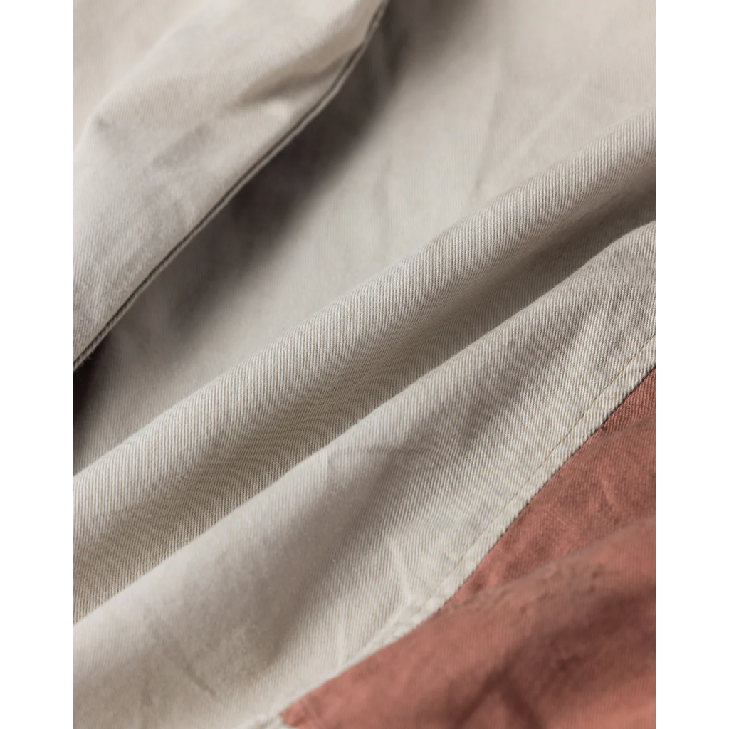 Through the dyeing and finishing stages, the fabric is heavily tumbled to achieve a worn-in, supple texture with a dry, natural touch.