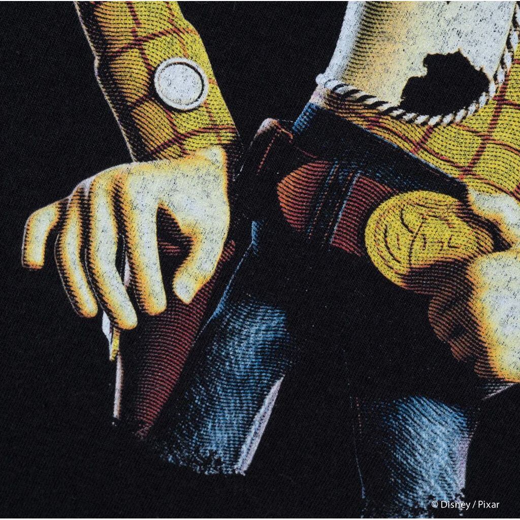 保安官バッジを光らせ、どこか挑戦的に「ニヤリ」と不敵な笑みを浮かべる「ウッディ」。最新の「かすれインクジェット」プリントによって、彼のトレードマークである黄色のチェックシャツや牛柄のベストが、長年「アンディ」の相棒として使い込まれてきた道具のような、奥行きのある質感に仕上げられています。