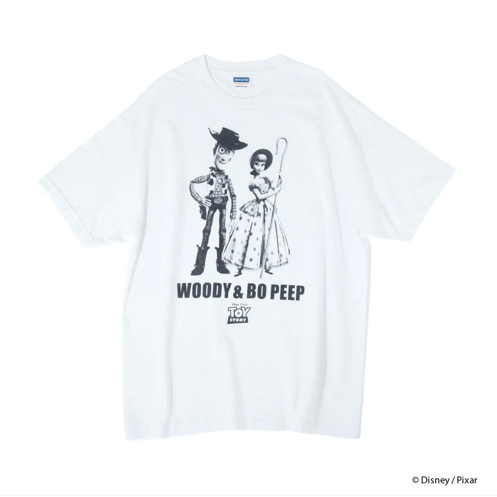 「ウッディ」と「ボー・ピープ」のプリントを施した半袖Tシャツ。
