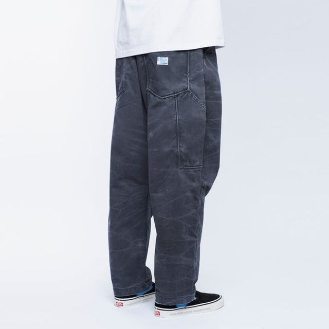 硫化染の生地を職人の手で独特の加工感に仕上げたサルエルチノペインターパンツ。