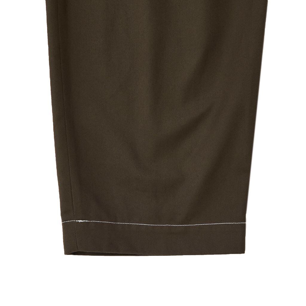ワイドなシルエットながらシューズを選ばないブランドが得意とするリラックスフィットとラウザーズに、90年代に一世風靡した巨大なヒップポケットと配色ステッチのスケーターパンツ仕様。日本製の良質な肉厚チノを使用。
