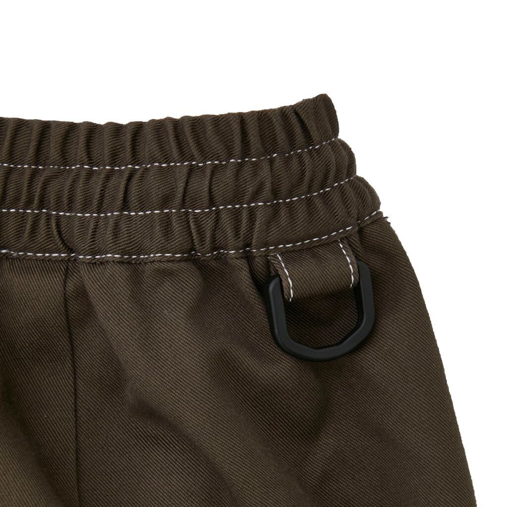 ウエストはエラスティックバンドにスピンドルのイージーパンツ仕様。ベルトループ、Dカンタブも付属。