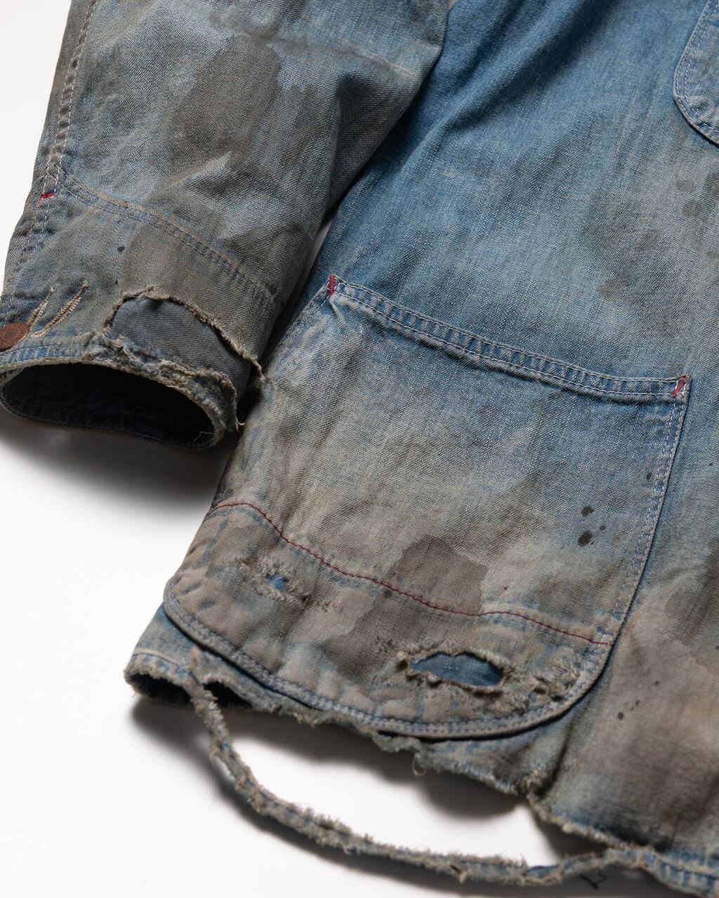 着古したエイジング感をベースにハードにダメージ、そしてリアルな汚し加工で仕上げております。