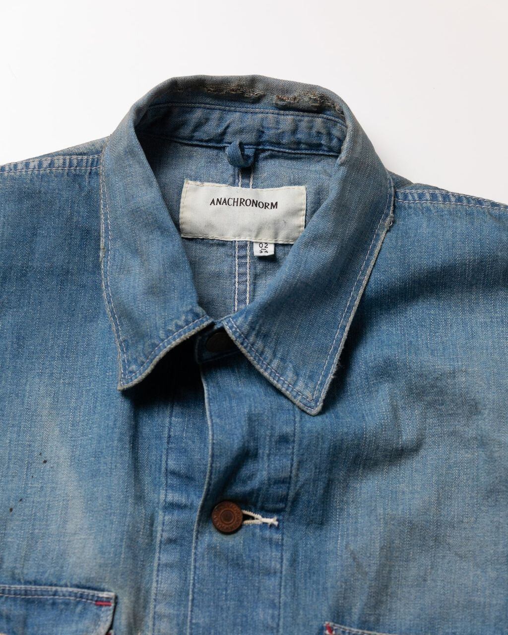 カバーオールは3本針の巻ミシンが主流なのですが、2本ステッチの巻ミシンを使用しています。