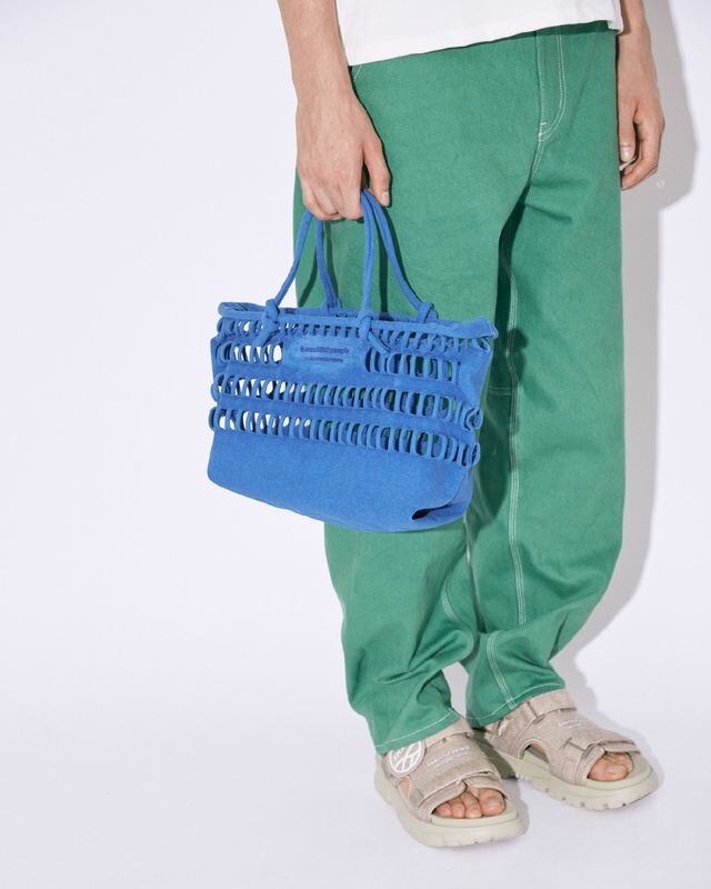 beautiful people konbu knit shopping busket bag blue
