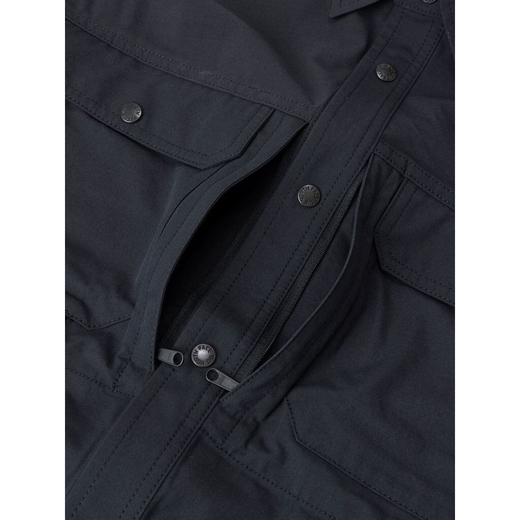 焚き火や調理を行うキャンプシーンに適した長袖シャツ。難燃性が高いモダクリル糸と耐久性に優れたコーデュラナイロン糸を混紡した素材を採用。生地に火の粉がつくと微量のガスが燃焼部分の酸素を奪い、無酸素状態にすることで瞬時に消火。さらに火がついた部分はすぐに炭化するため、溶けた生地の液垂れによるリスクも低減します。