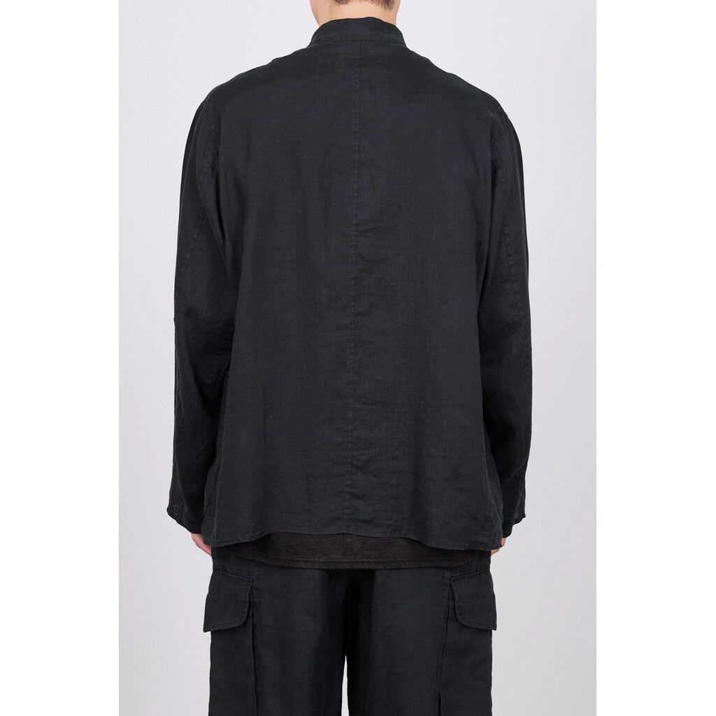 経糸緯糸ともにリネンの60 番単糸で平織にした生地。汗ばむ季節はさらっと快適に肌離れの良さを感じていただけます。製品加工で全体にフェード加工を施し古着のような風合いを出しています。
