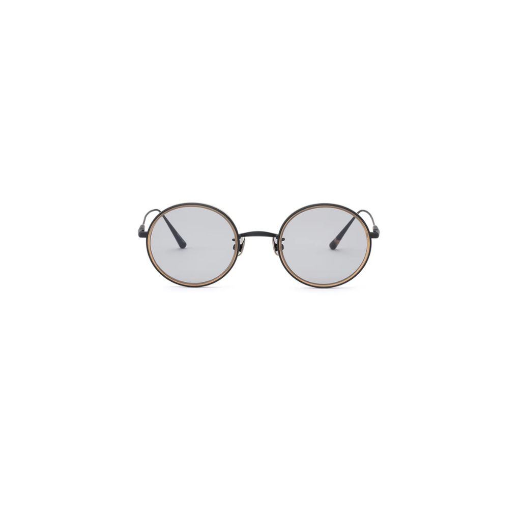 アセテートのインナーリムを使用したメタルラウンドモデル。オリジナル型のテンプルには弾力性のあるベータチタンを使用。テンプル先の色変えにはアセテート素材を使っています。