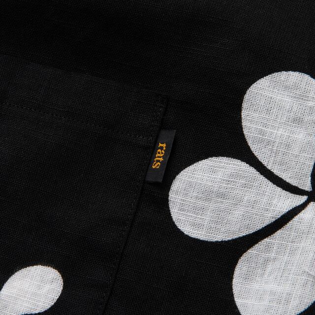 透け感のあるスラブコットン素材を使用したオープンカラー仕様の長袖ハワイアンシャツ。フラワーの総柄プリントで表現したオリジナルテキスタイルを採用。左胸にパッチポケットを配置、ポケット縁にはratsロゴが刺繍されたピスネームを挟み込んだデザイン。袖口はシングルカフ仕様、裾はクラシックなボックス型とクラシックな意匠を採用したデザイン。身幅にややゆとりのあるボクシーなシルエット。ワンウォッシュ仕上げ。1色5サイズ展開