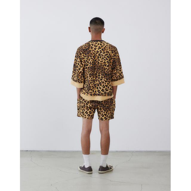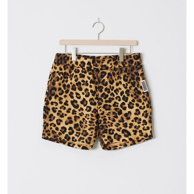 ショートレングスでミニマルなシルエットのスウェットショーツです。ミディアムオンス裏毛にレオパードプリントを施した生地を使用しています。