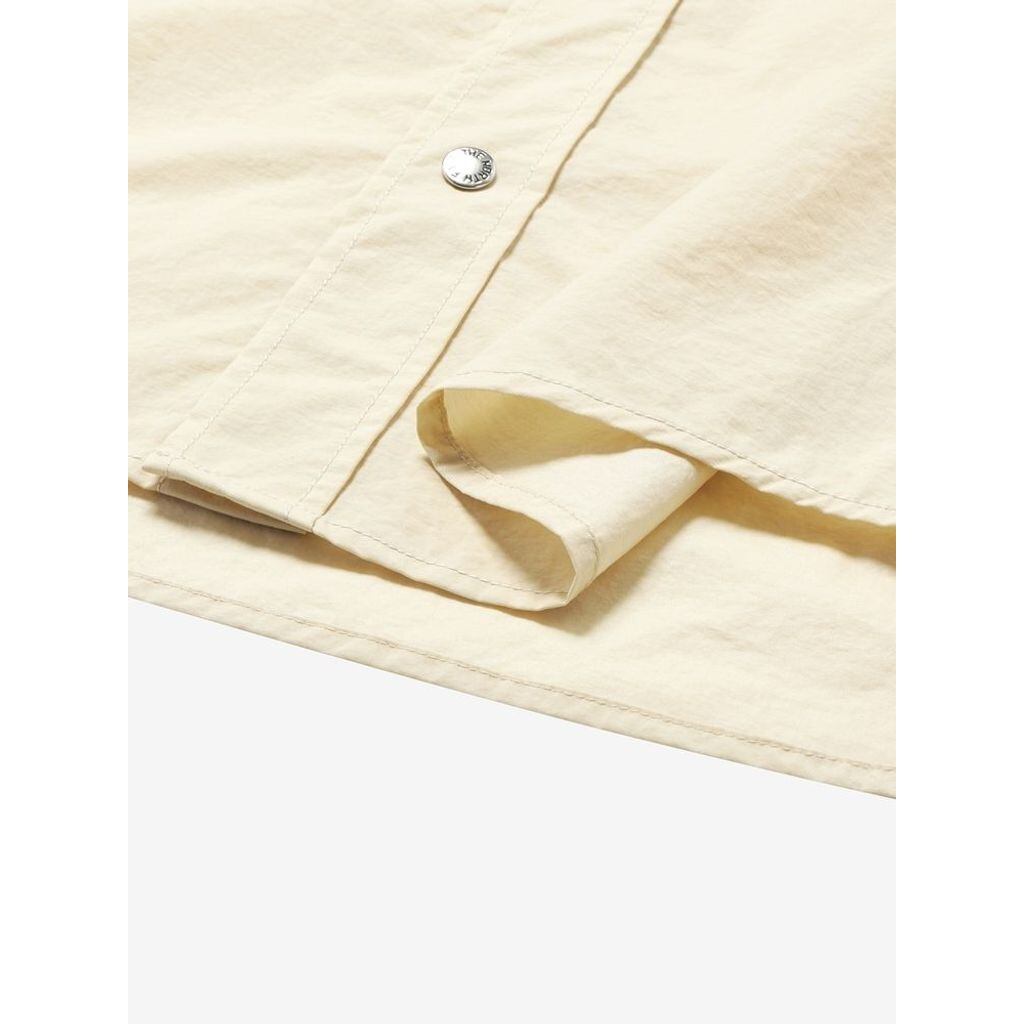 THE NORTH FACEのアイコニックな肩切り替えのデザインを、ショートスリーブシャツに落とし込んだ1着。ハリのある生地は、リサイクルナイロン100%。天然素材のようなナチュラルな風合いを持ちながら、はっ水性を持ち合わせています。