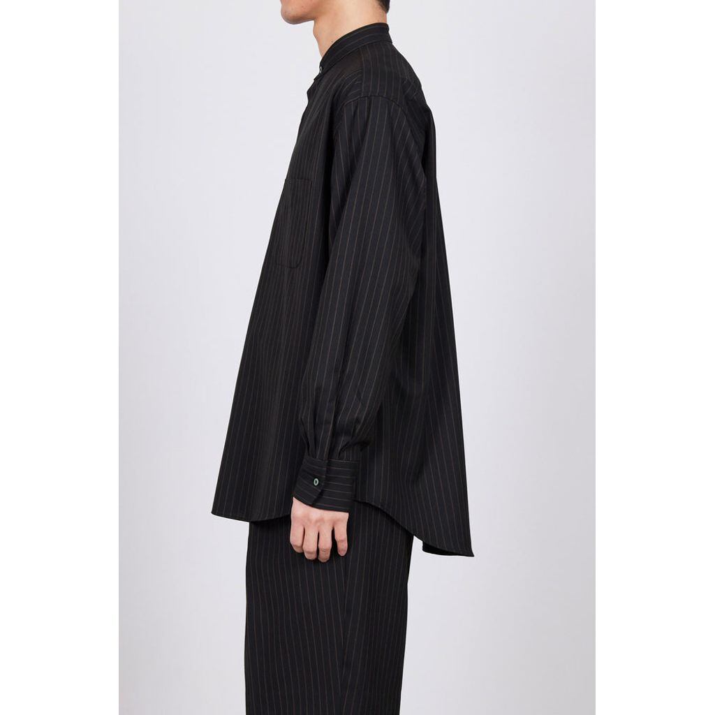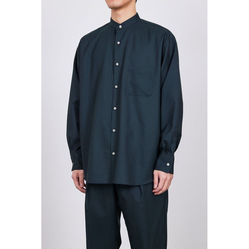 ややゆったりめのサイズ感が特徴の「COMFORT FIT SHIRT」をバンドカラーに仕立てました。身幅は程よくゆとりもたせ、それに合わせて袖も太めに。着丈はそこまで長くなく、小柄な体型でも着やすいシルエットです。前立てはフレンチフロントで装飾性を省き、胸ポケットも無くした極めてシンプルなデザインが魅力。