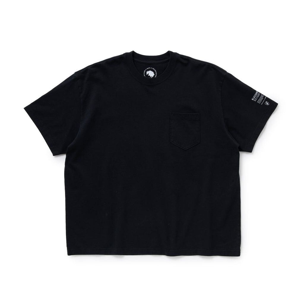 6.4ozの滑らかなコットン天竺素材を使用したパックTシャツビッグシルエット。左胸にポケット、左袖にBLACKANDYELLOW・レターグラフィック・エンブレムモチーフをラバープリントしたデザイン。1枚で着ることを想定した仕様ながら、大きめのシャツやスウェットのインナーとしても活躍するサイズ感。クルーネックの1パターン展開。身幅にゆとりのあるシルエット。ワンウォッシュ仕上げ。2色5サイズ展開。