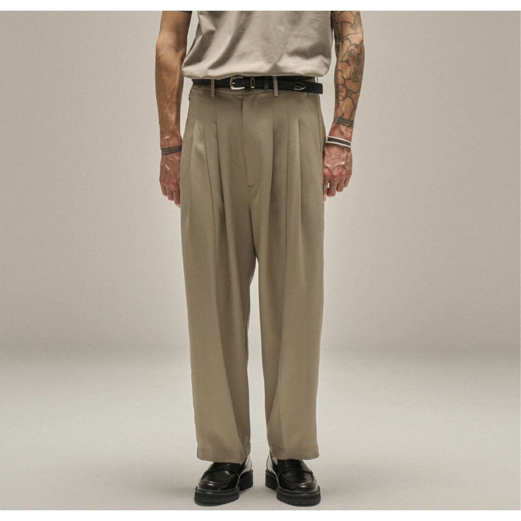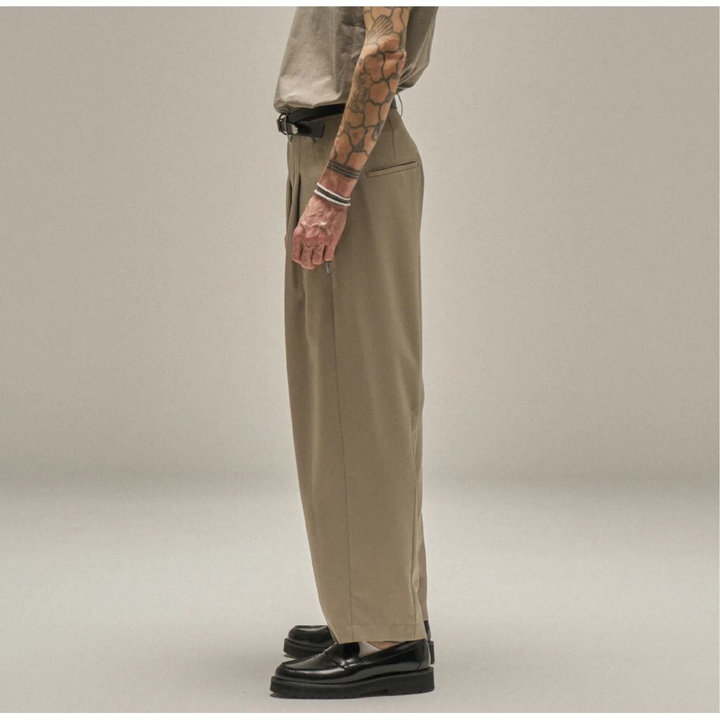 ストリートスタイルでも、ドレッシーなスタイルにもその場に応じてトップスやシューズを変えるだけで様々なスタイルを楽しむことができるバルーンシルエットのトラウザー。ダーツを使用して形成された太めのリラックスフィットはコンセプトでもあるコンフォート仕様。さらにはタックが入ることで洗練された高級感のあるシルエットに。
