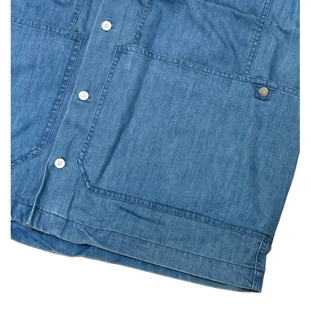 デニム調のワークディテールながら、衿をオープンカラーにすることで夏らしいさわやかな雰囲気も持ち合わせ、ステッチ色もボディー同色にした主張しすぎない一枚です。