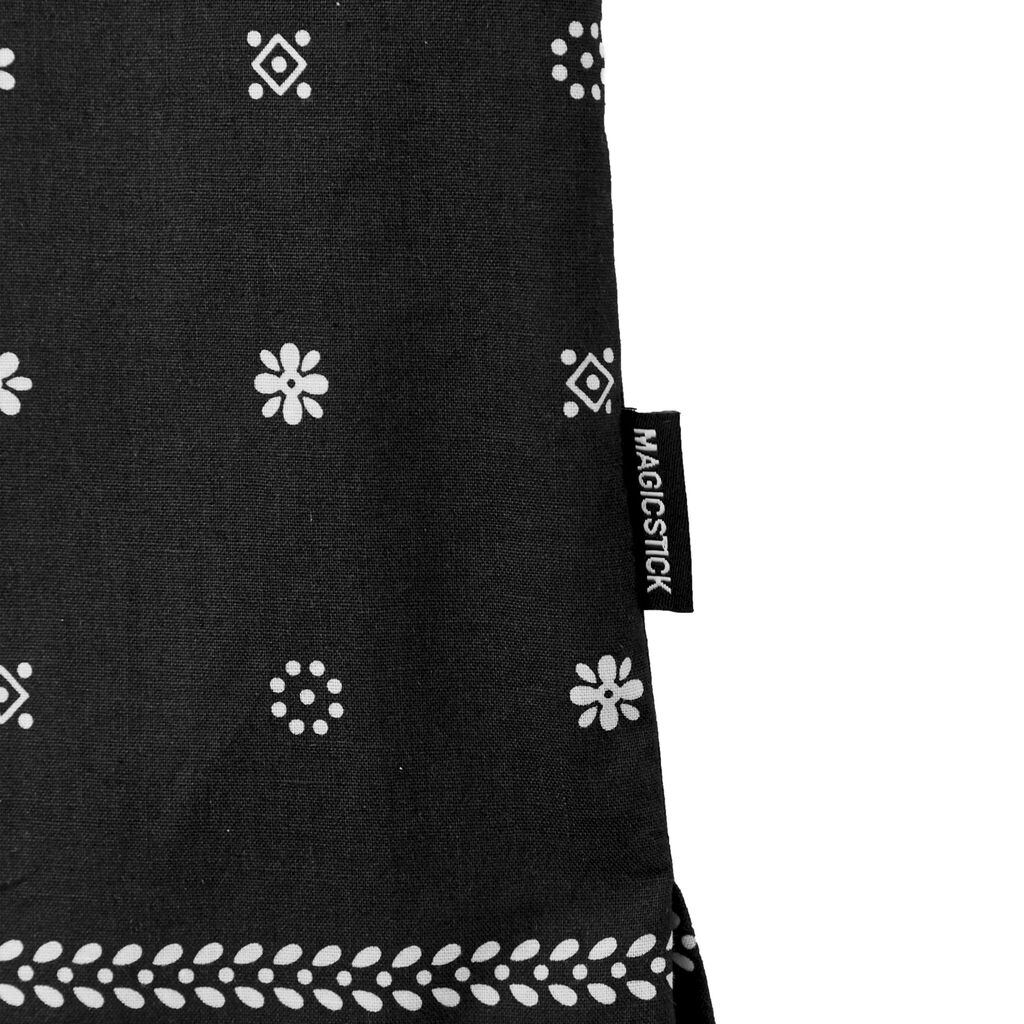 日本のバンダナや手拭いなどの専門工場にて綿100%のプリント生地を製作し、世界のハイブランドなどを多く手がける西日本の丁寧な工場で縫製。