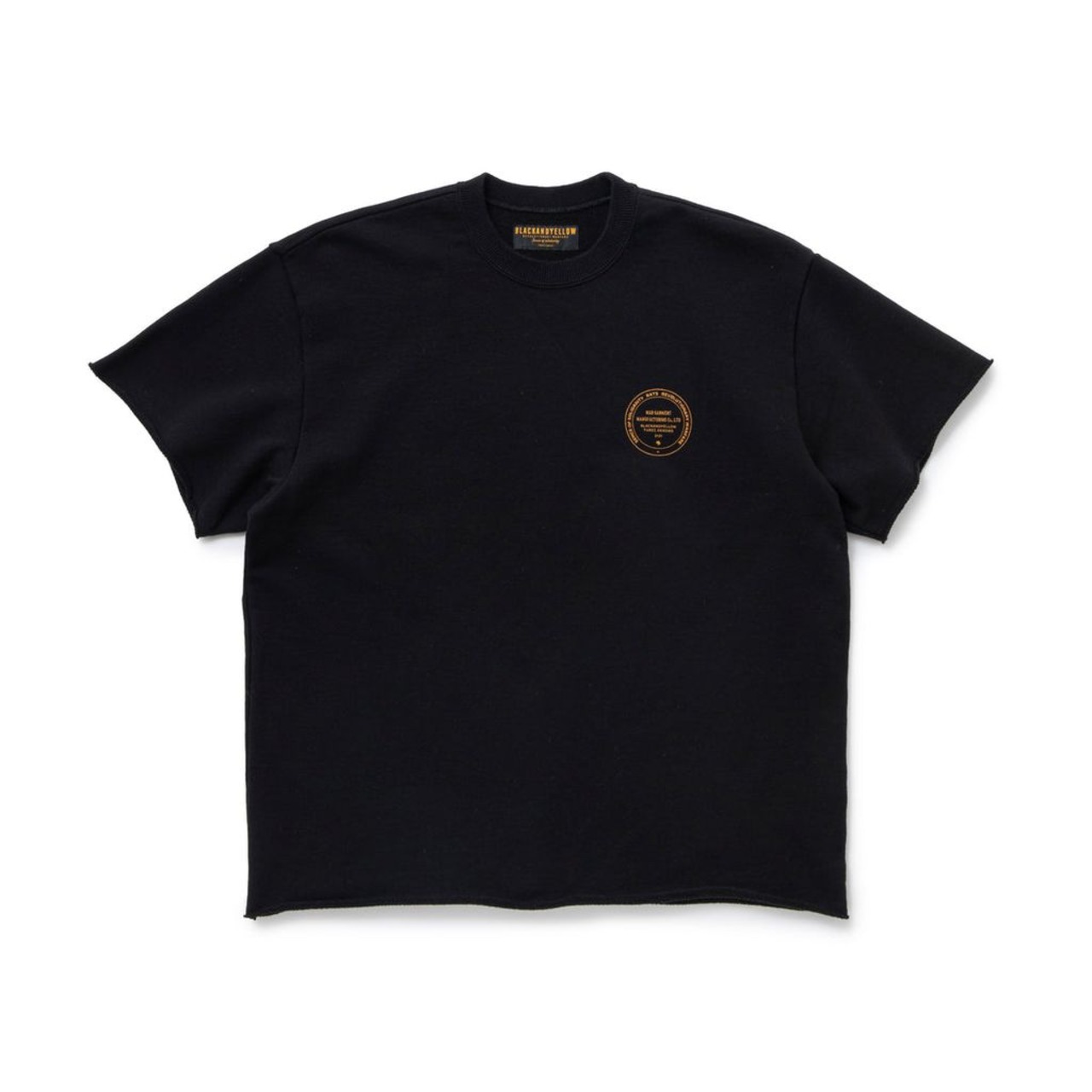 袖・裾を敢えてロック始末せずに、カットオフしたままの仕様。左胸にMAD GARMENTS MANUFACTURING CO LTDレター・Ratモチーフで構成したサークル型グラフィックを厚盛りラバープリントで表現したデザイン。