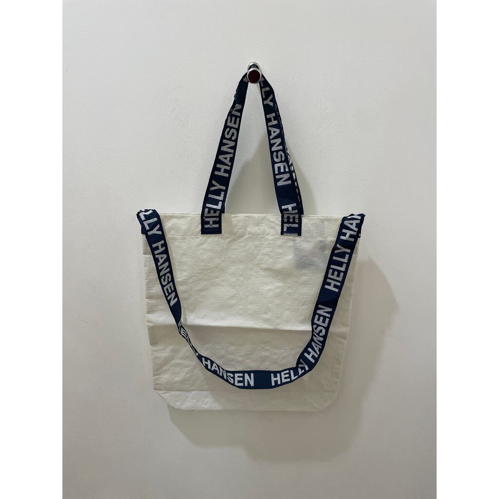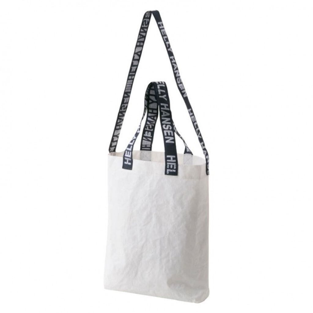 素材感を生かしたシンプルな無地で、ハンドルのHELLY HANSEN ロゴがポイントになっています。生地に防水性があるため、買い物にはもちろん、水遊びやキャンプで濡れたものを入れておくのにも重宝します。A4サイズの書類も余裕で入るミディアムサイズの縦型トートタイプで、肩掛け、ハンドルと斜め掛けできるショルダーストラップを備えています。