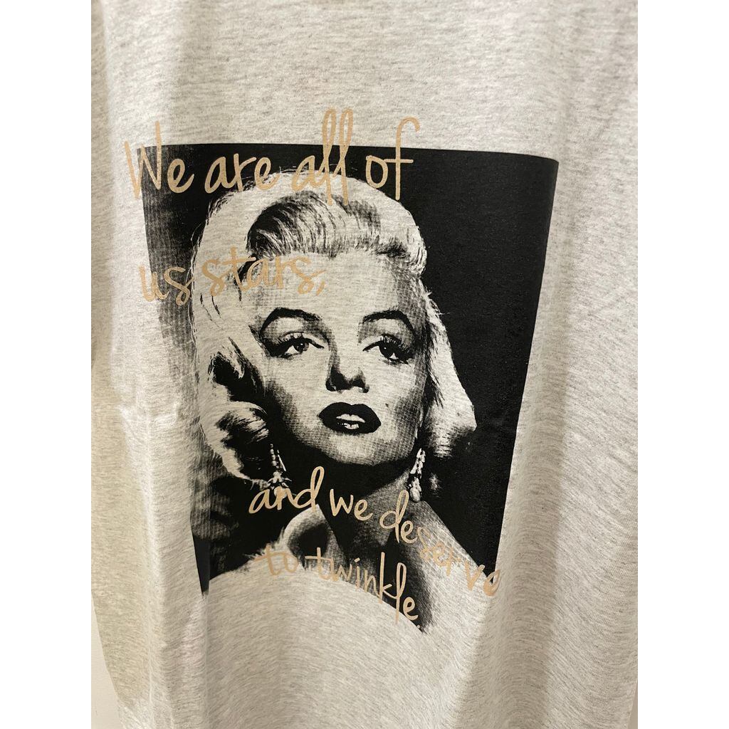 モノトーン配色のプリントTシャツ。