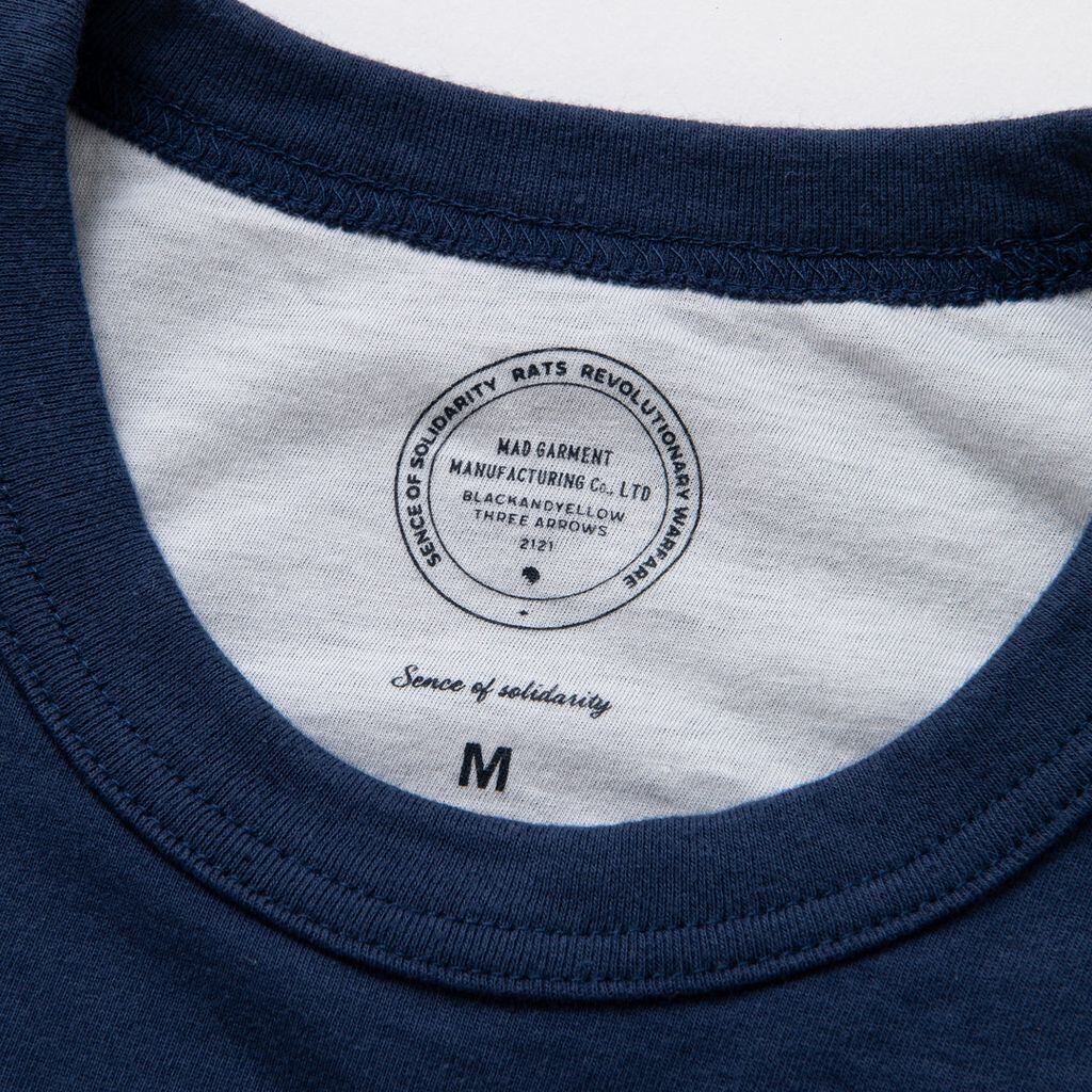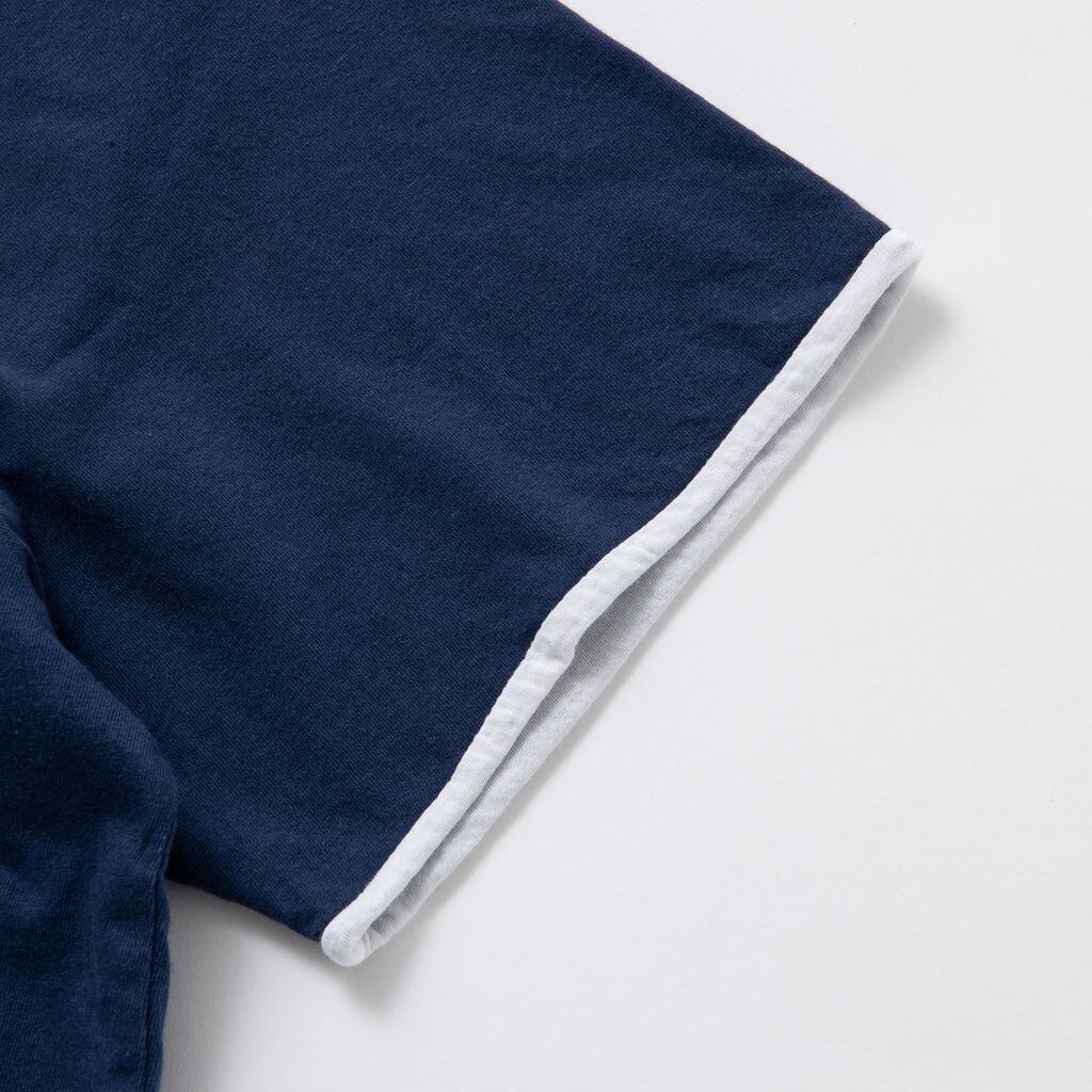 オリジナルで作成した柔らかな風合いのコットン天竺素材を使用したリバーシブル仕様のショートスリーブTシャツ。胸元にM.G.M.CのMCクラブ風ロゴをフロッキープリントで表現したデザイン。ネックはRatsらしいタフさのあるダブルステッチで仕上げたバインダーネック仕様。袖・裾はミリ単位で計算された反対面の配色が露出する仕上がり。レギュラーフィットシルエット。ワンウォッシュ仕上げ。2色5サイズ展開。