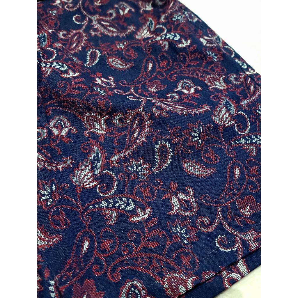 水面下で作成していた、デッドストックの生地を使用した、ペイズリーのジャガード織りインディゴデニムを用いたEZショーツ。