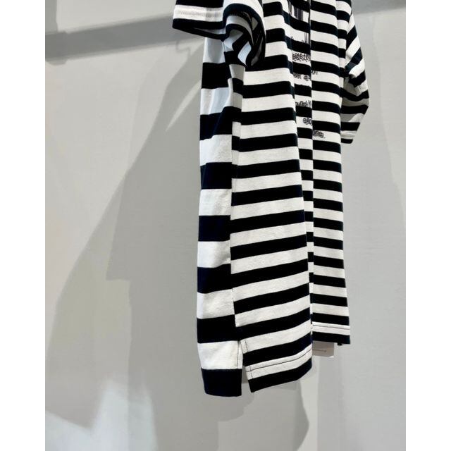 太さの異なるボーダーを組み合わせたカットソー生地に、Ground Yのブランドロゴをアンニュイな雰囲気の落書き風にアレンジしたグラフィックをプリントした爽やかな印象のカットソーです。
