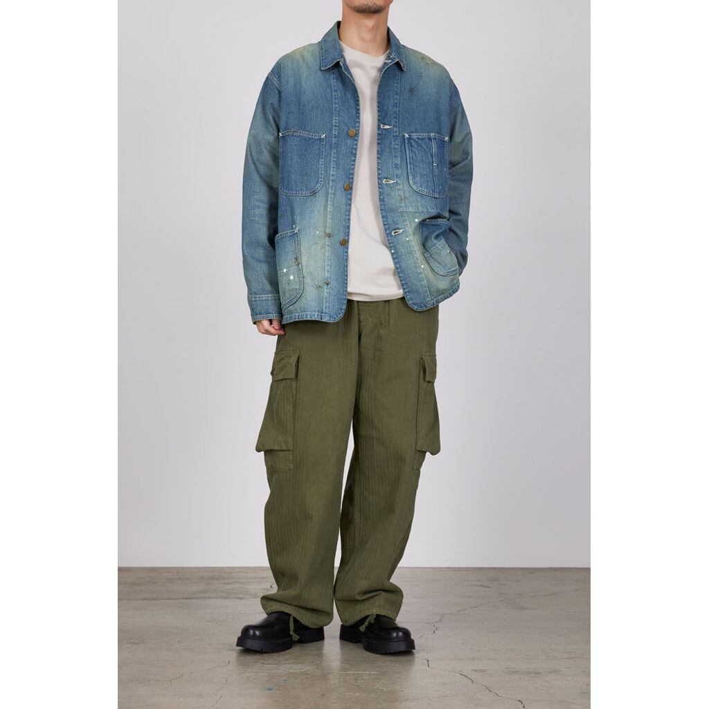 何年も着こんだような風合いを出すためにUSED加工を施しているので、雰囲気のあるカバーオールです。