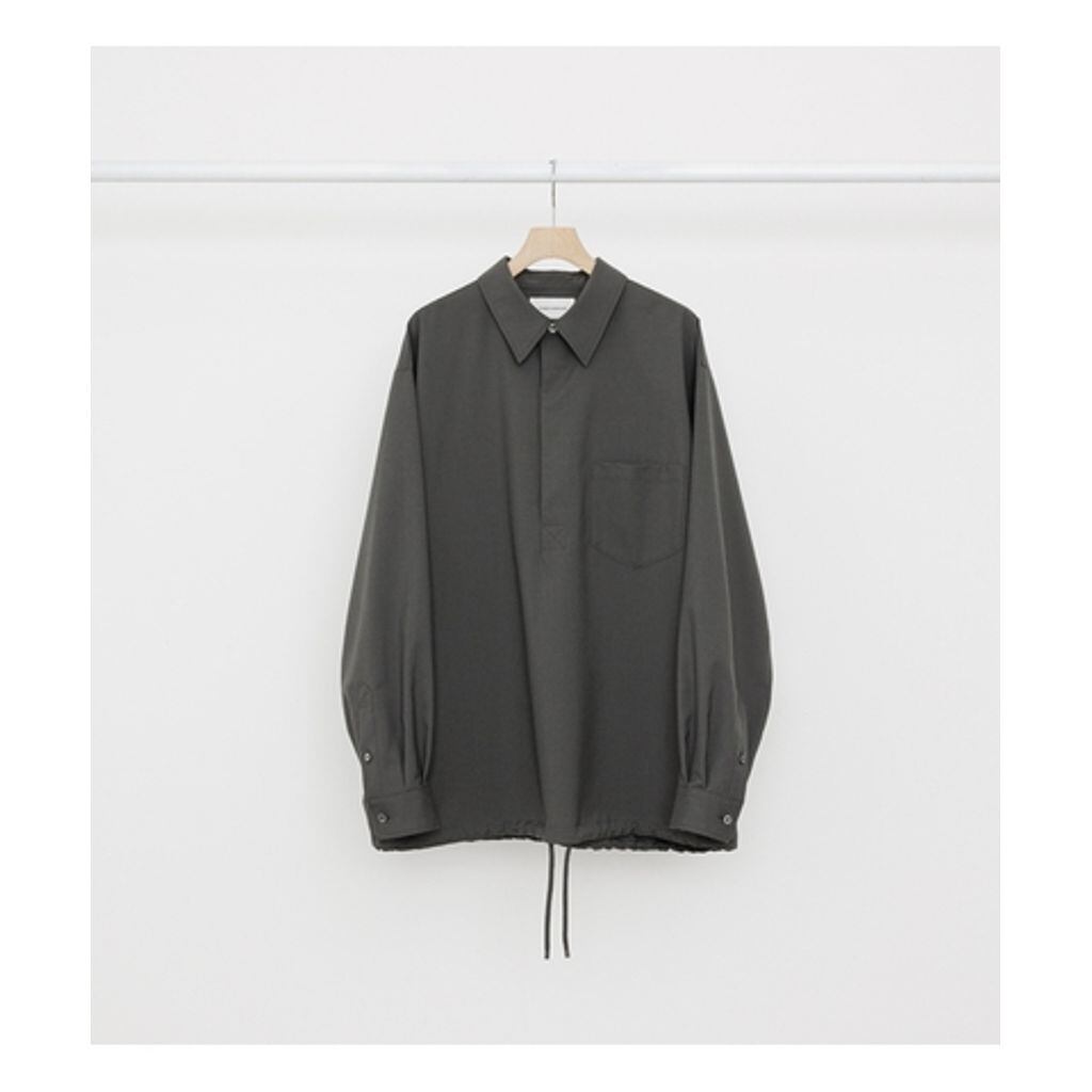 ゆったりとしたフィット感と、被って着るプルオーバータイプのパターンも、いつものシャツとは違い、ワードローブの良いアクセントになる一着。 肌と生地の間に生まれる空間が、どこか大人の余裕を感じさせるアイテムです。程よい艶感のある生地によって、優雅でリラックスしたムードを演出します。 共地のパンツと一緒にセットでコーディネートするのはもちろん、デニム、チノパンツなどと合わせてカジュアルに着こなすのもおすすめです。