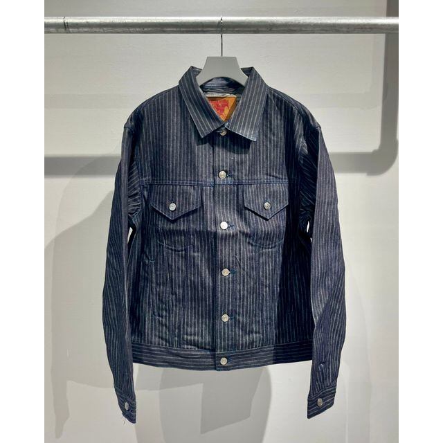 日本に数台しかないジャカード織機を使用し、タテ×ヨコ 8番単糸を使用し、12oz のストライプ ジャガードデニムを別注し製作。