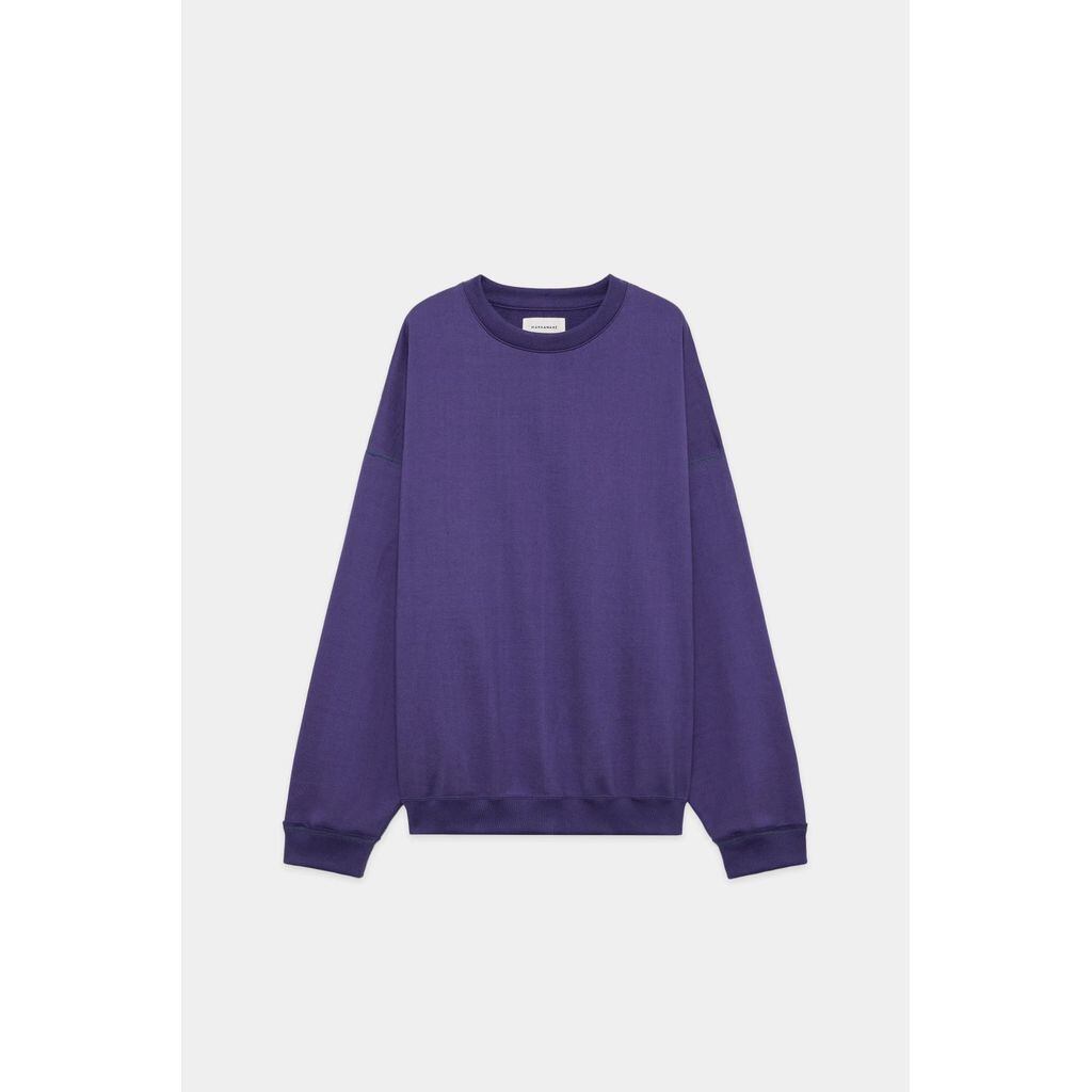 ベーシックなクルーネックスウェットを、現代のスタンダードとも言えるオーバーサイズシルエットで再構築。裾のリブがソフトにシルエットを引き締め、絶妙なドレープ感を演出。丸胴による脇の縫い目のない美しいシルエットに加え、後ろ身頃をやや長めに設定。肩が自然に落ちる、軽やかでリラックスしたラインが生まれ、360度どこから見ても美しいフォルムを実現しています。