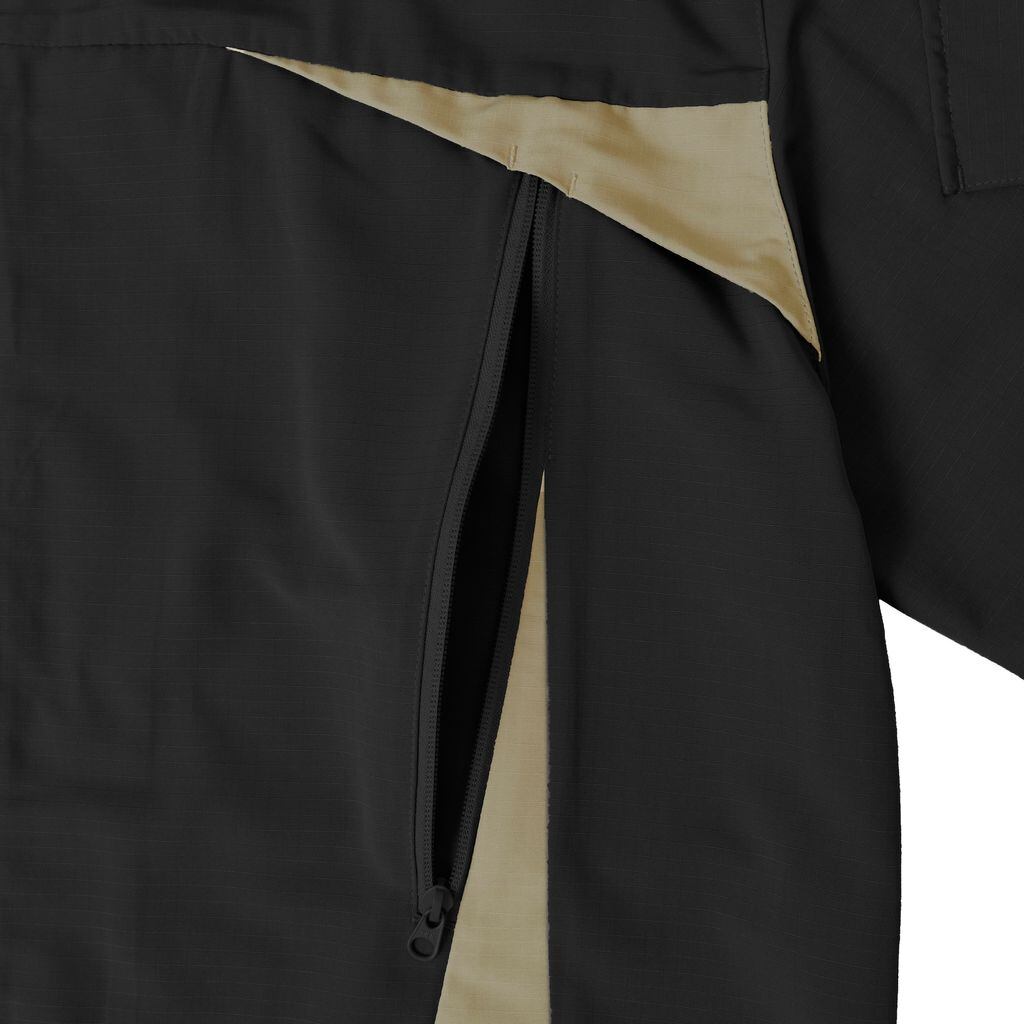 撥水加工が施されたコットンライクのリップストップポリエステル素材を使用。