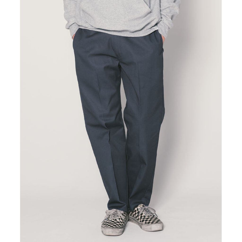 ワークパンツの定番ディッキーズ874を基に作製したパンツ。スケーターからバイカー、ハードコアのミュージシャンまで広く愛されるワークパンツの定番ディッキーズ874の特徴である腰回りの太さ、股上の深さをベースに膝下からゆるやかにカスタムリシェイプしたパンツ。