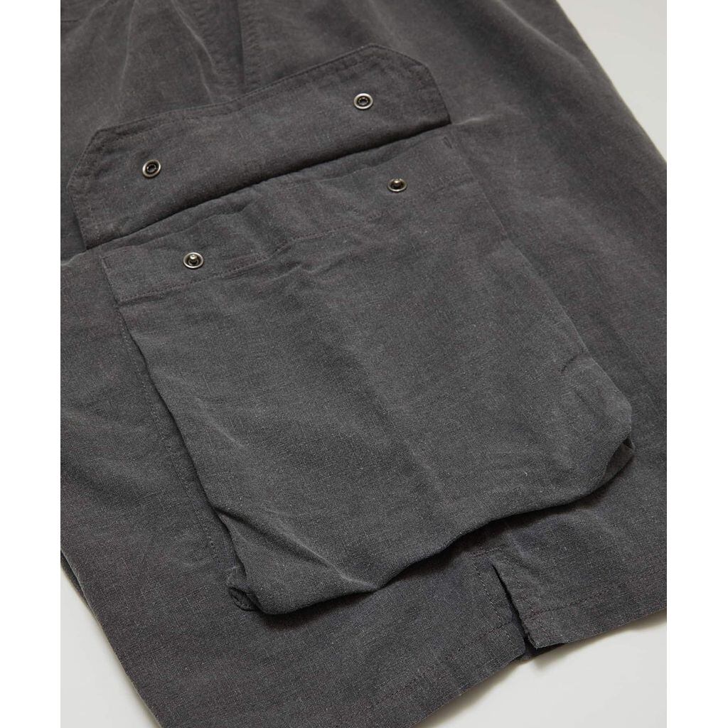 顔良染めコットンリネンのカーゴポケットショートパンツ。ウォッシュ加工。