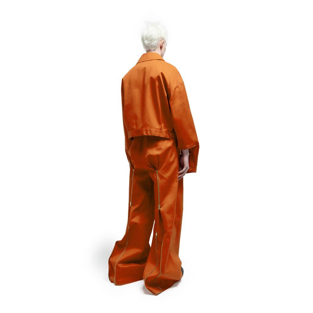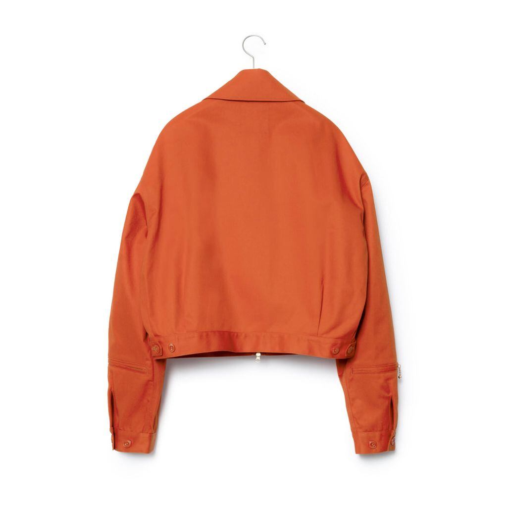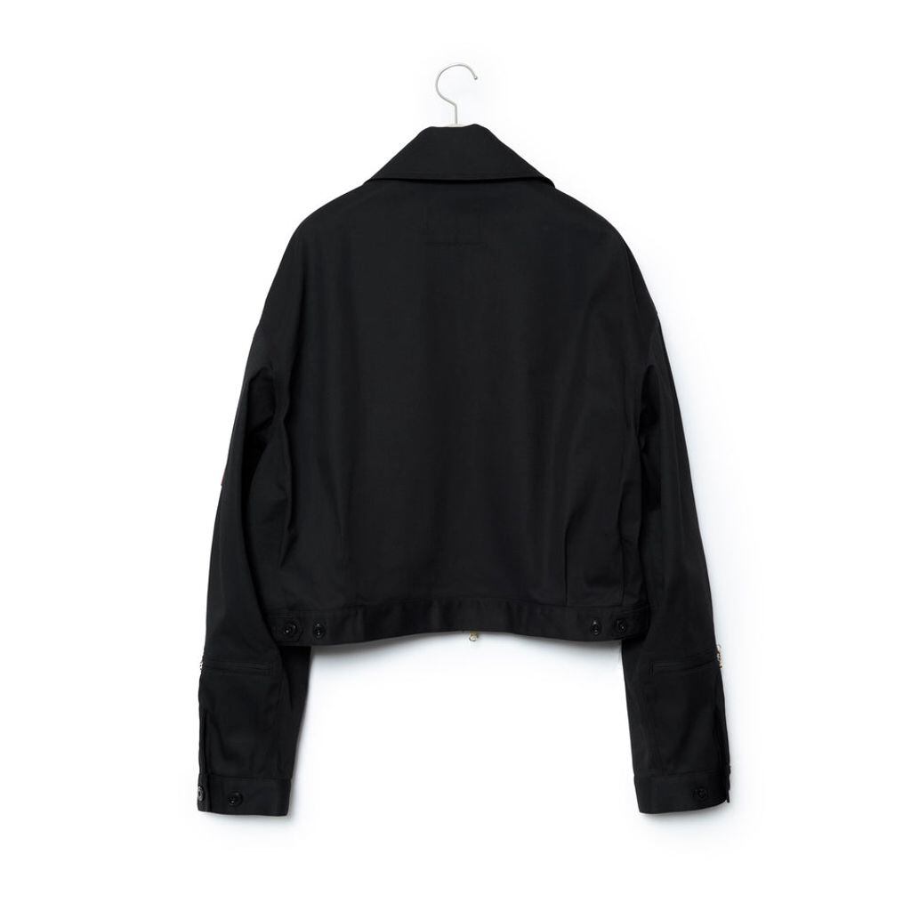 Dickiesの定番ツイルと仕様で作られたアイゼンハワードジャケットを基に、短い着丈や大きな衿も含め、あたかもキャラクターが着用するようなサイズ感にデフォルメされたアイテム。