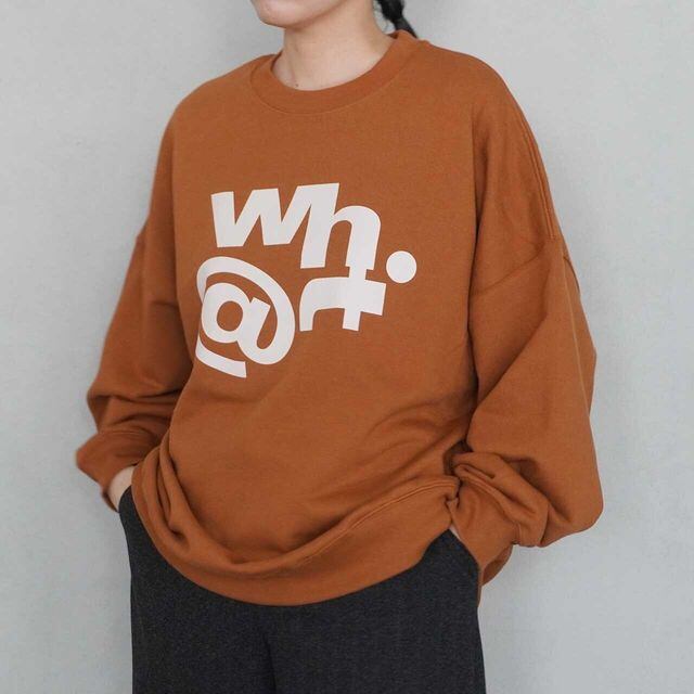ビッグサイズのスタンダードスウェットです。裾と袖口にリブがついています。こちらはリブ付きなので、袖口はリブで止まるのでたくしあげたりできるタイプになっています。これまで出したスタンダードなスウェットの中で前回同様の1番大きなサイズです。最近は小さめのジャストサイズか、超ビッグなシルエットが気になっています。真夏以外3シーズン着れて便利。今回は、160cmの方が着て、太ももの上部あたりの丈になるので、流行のノーボトムでもヒップが隠れて良いのではないかなと思います。