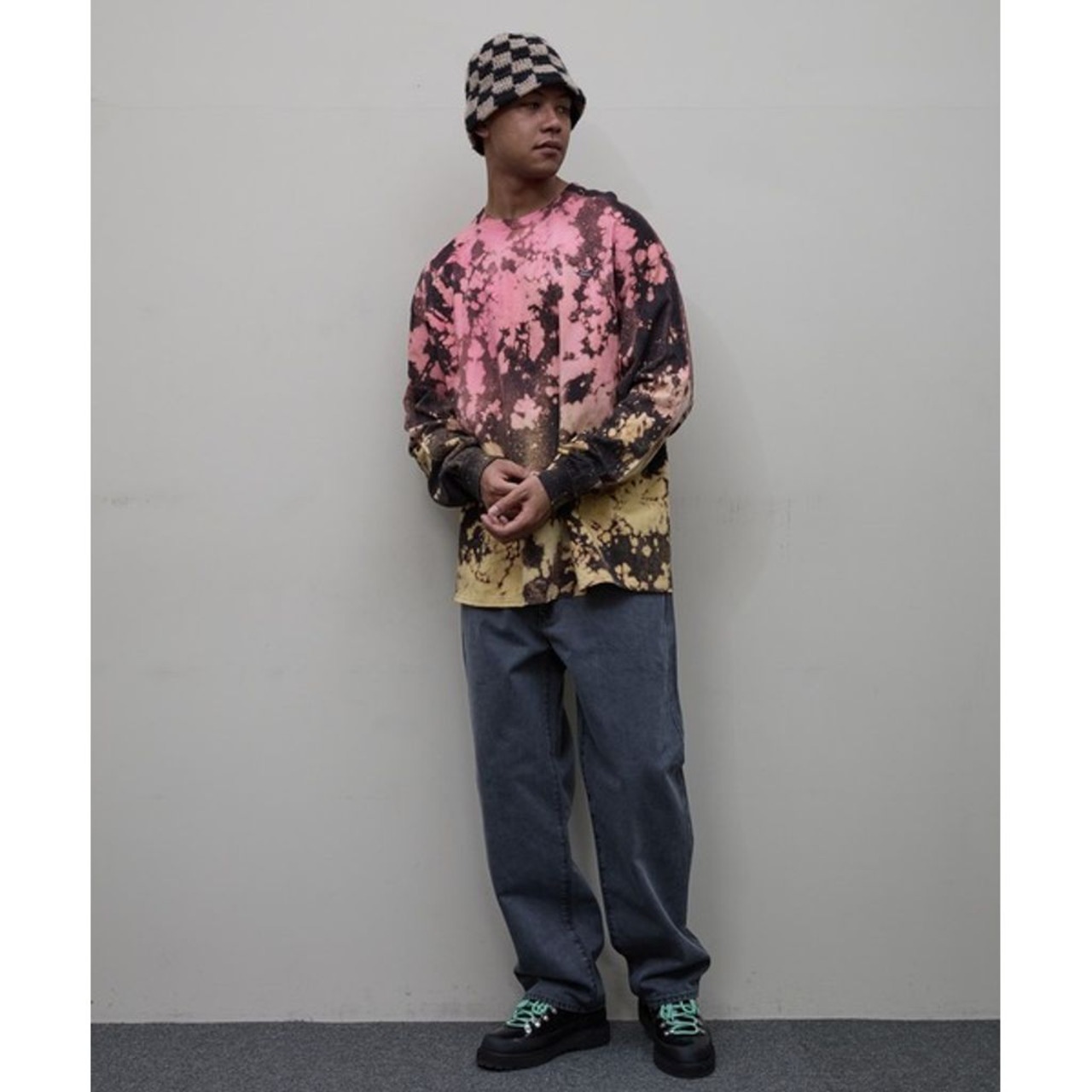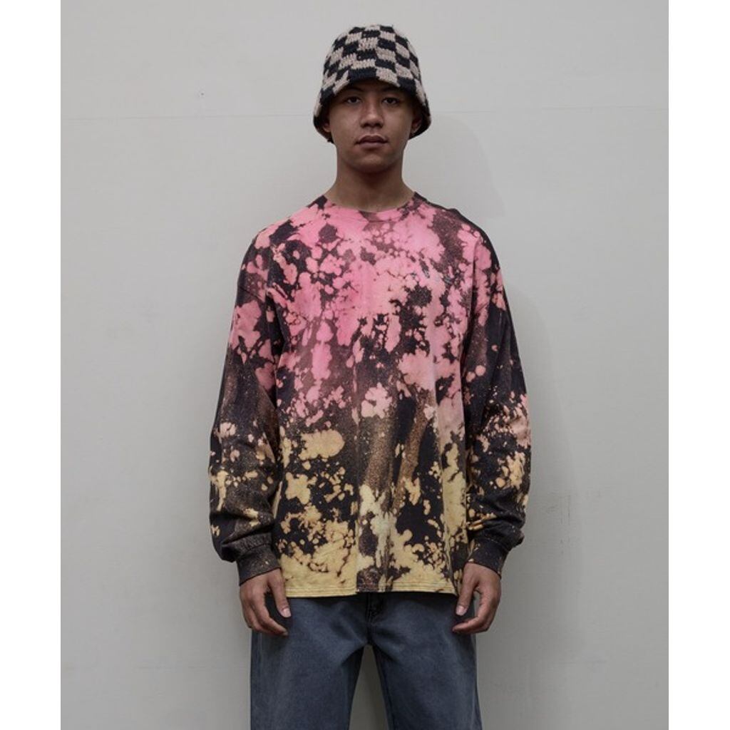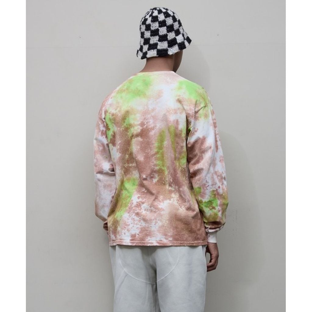 オリジナルタイダイ染めロングスリーブTシャツ。胸にワンポイントのロゴ刺繍。レギュラーオンス。レギュラーフィット。 タイダイアーティスト〈YUKIDYE〉によるハンドメイド。