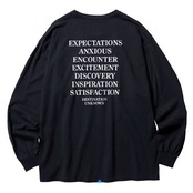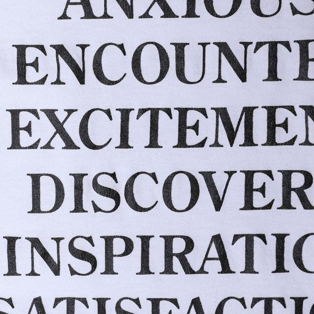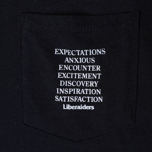 ポケット上にはプリントが入り、背中にも大判で旅に関する心境を綴ったメッセージプリントが入ります。