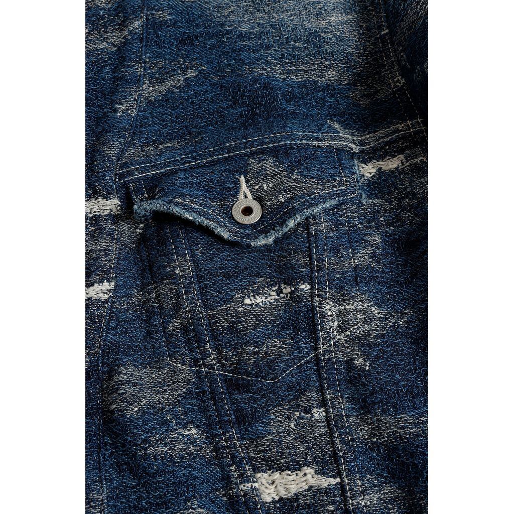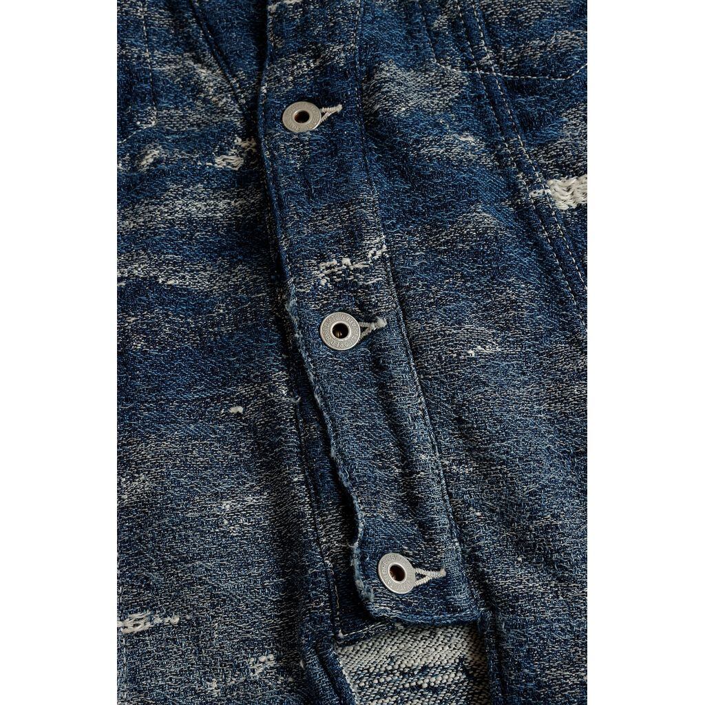 生地にはダメージデニムをモチーフにデザインしたジャカード織を用い、5年間着用したような加工を施しました。