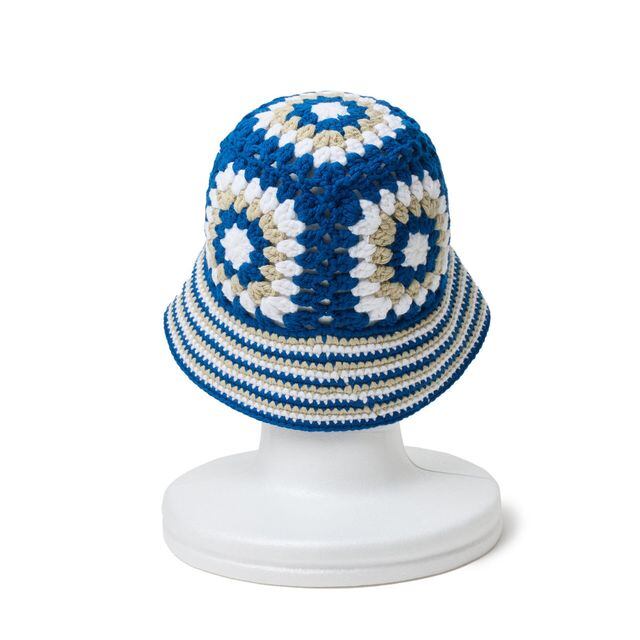クロシェ編みを採用したニットバケット。手編み風の柔らかなデザインが特徴。