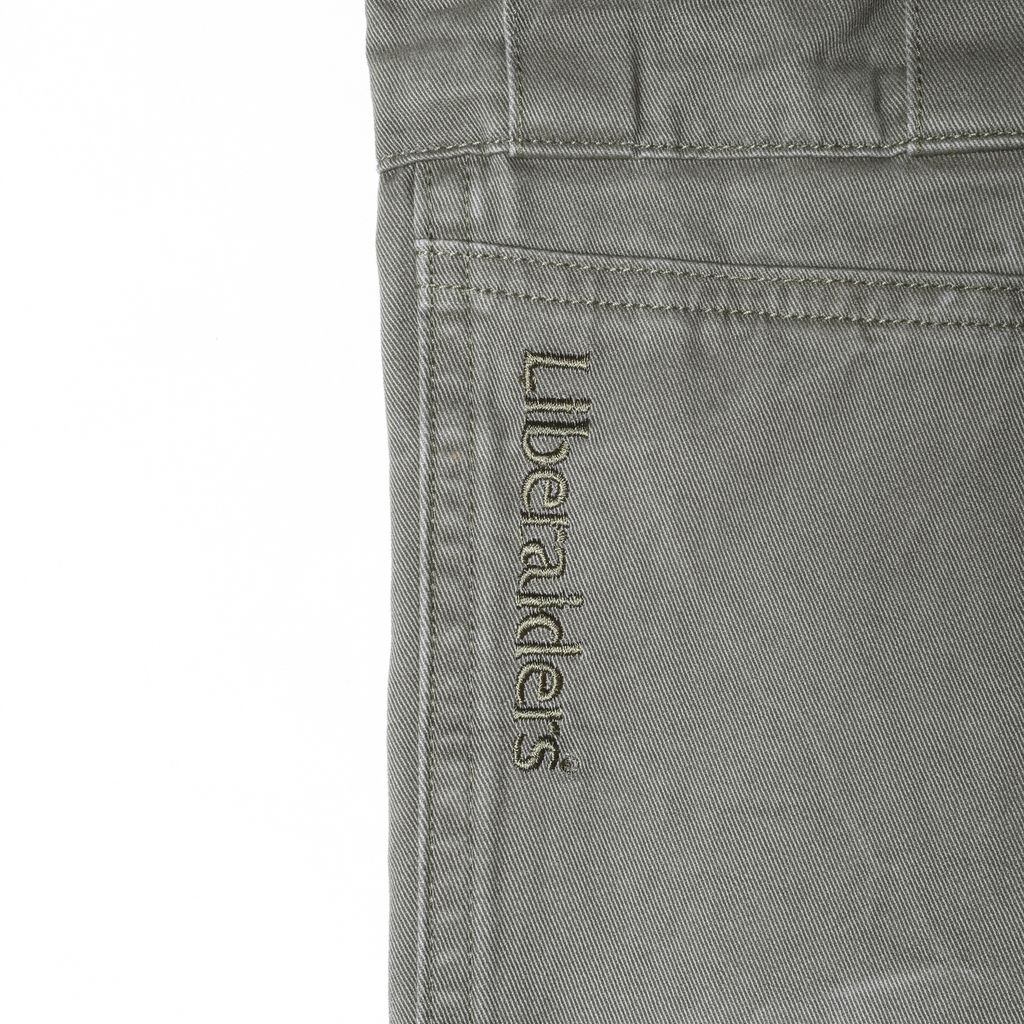 ウェストはゴムと紐を配置しイージーパンツのように履けるリラックス仕様。右膝にはOGロゴの刺繍が入り、ポイントになっています。左裾にはユーティリティポケットを配置。定番の6ポケットパンツよりやや太めのシルエット、カゴ洗いによる独特な風合いの加工感もポイントです。