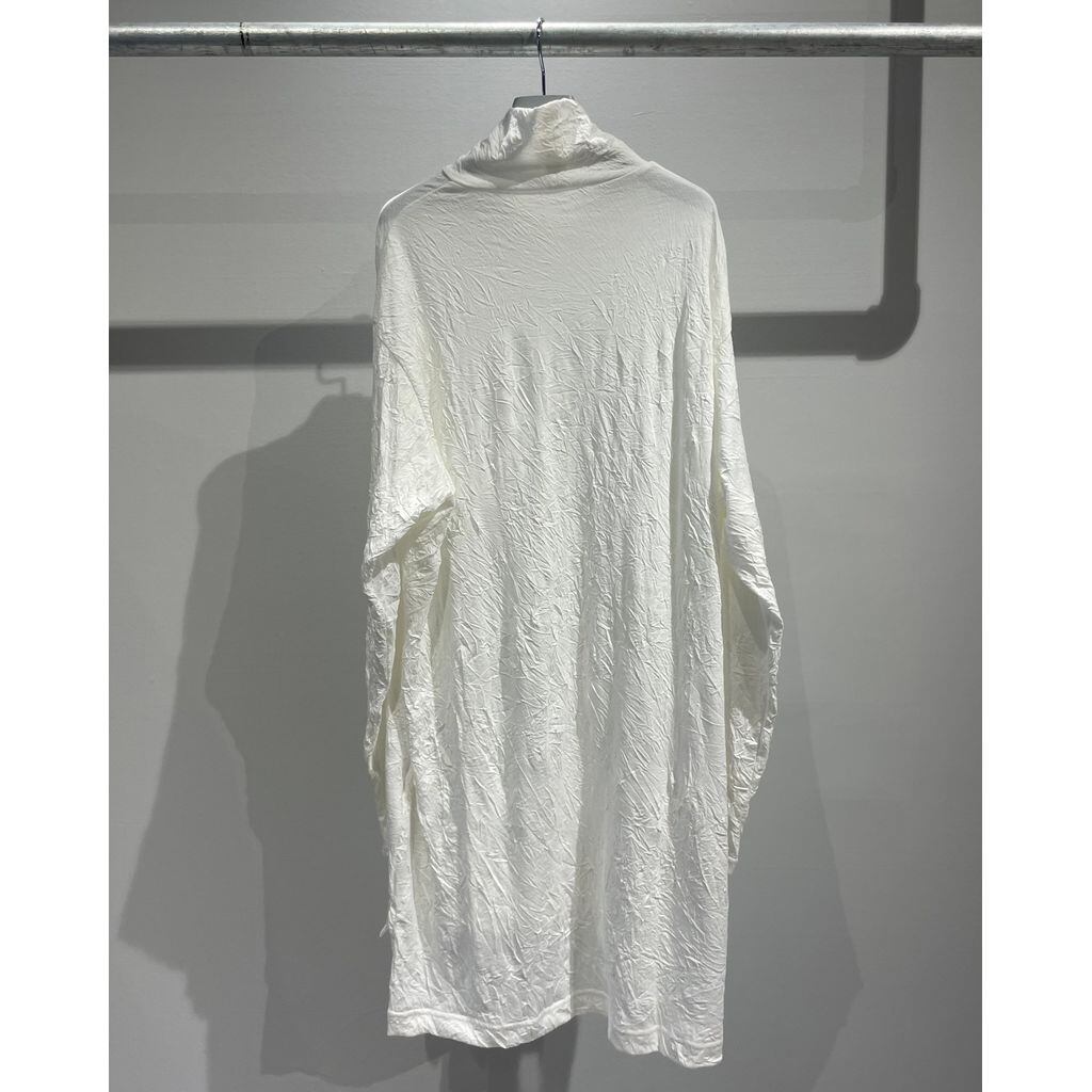 ハンドメイドでシワ加工を施し表情のある生地を採用した長めの丈感のタートルネックカットソーです。