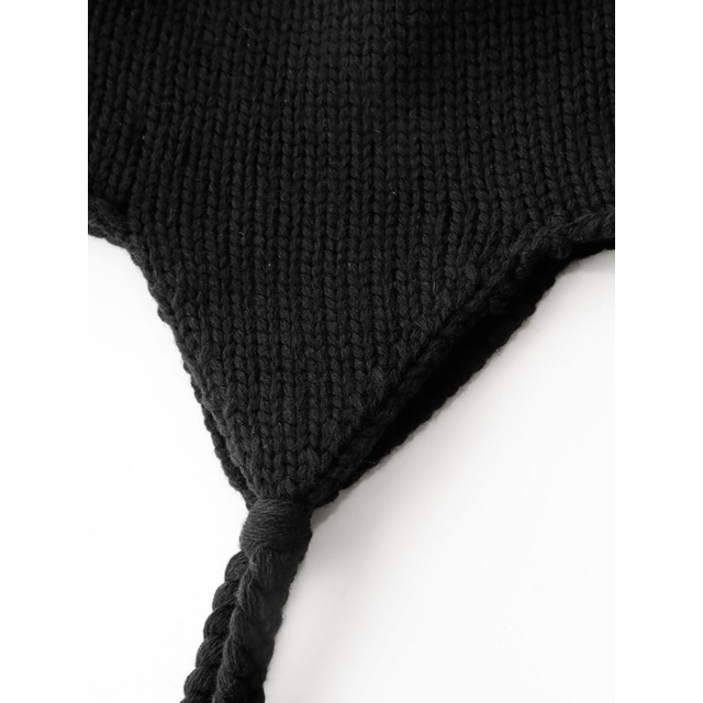 折り返しのないシンプルなディテールにイヤーフラップ、耳当てが設けられた仕様。